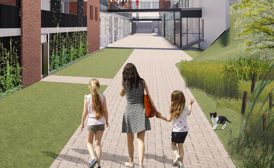 Présenté comme un futur moteur du développement commercial de la Ville de Binche, le nouveau quartier ne devrait pas vivre en vase clos. Les promoteurs insistent sur la connexion, sorte de promenade, qui reliera le centre-ville historique à la nouvelle zone.