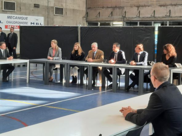 Une foule considérable tenue à bonne distance attendait les officiels. Un nombre impressionnant d’équipes de télévision, y compris internationales, étaient présentes ce qui s’explique par le caractère incompréhensible des évènements de la nuit. Le Roi et la princesse étaient accompagnés du Premier ministre Alexander De Croo, de la ministre de l’Intérieur Annelies Verlinden, du Ministre-président wallon Elio Di Rupo, de la Vice-Première wallonne Christie Morreale du Procureur général de Mons, du Gouverneur du Hainaut et des autorités communales dont le bourgmestre visiblement très marqué par cet horrible fait divers.