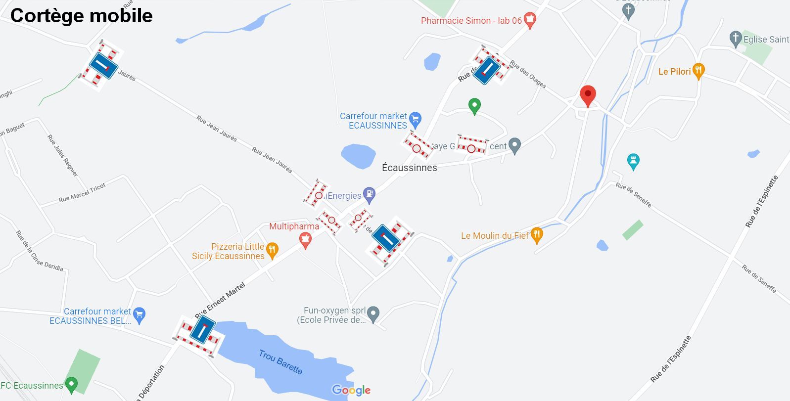 Lors du cortège mobile, la circulation ainsi que le stationnement sera interdit à tout conducteur sur les voiries suivantes :