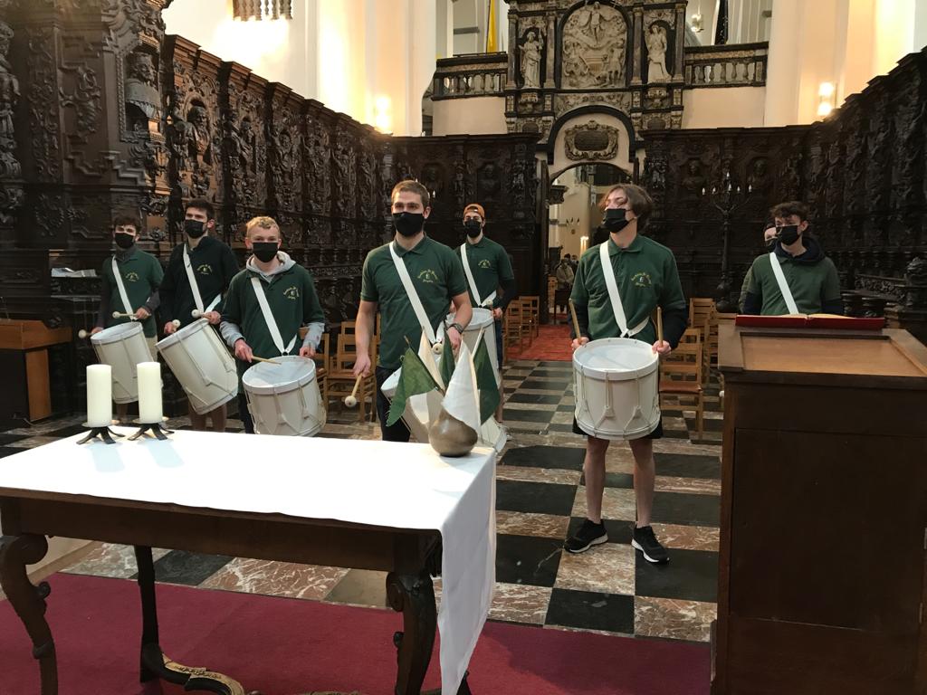 De manière très symbolique, certains acteurs de la procession ont marqué cette journée de leur présence. Exemple avec ce groupe de tambours qui habituellement accompagne les pèlerins du Tour Saint-Vincent, tôt le lundi matin, de chapelle en chapelle, pour ensuite prendre part à la procession historique.